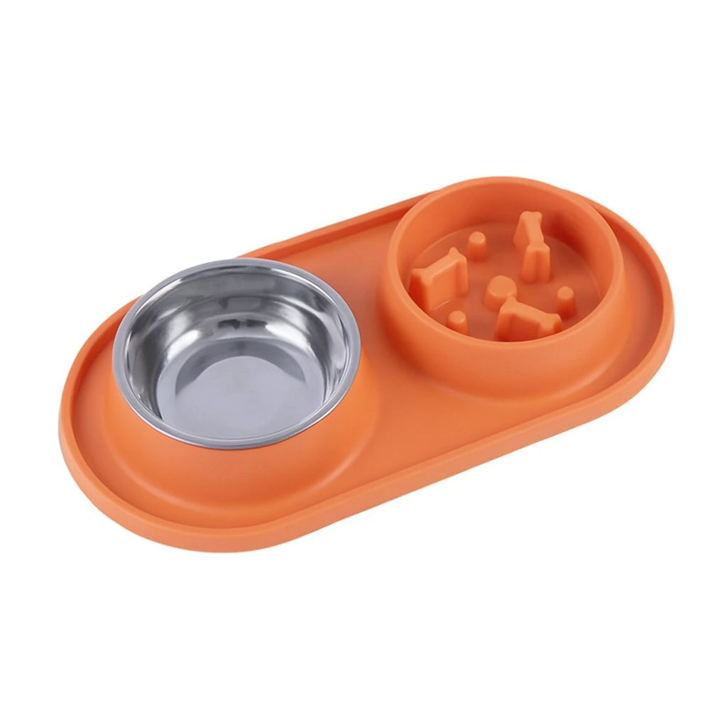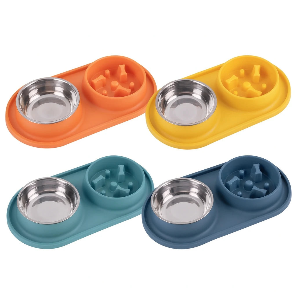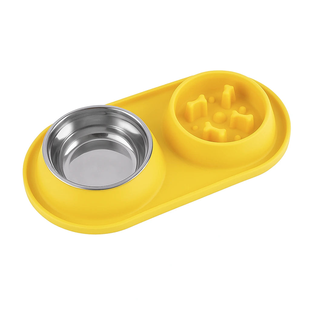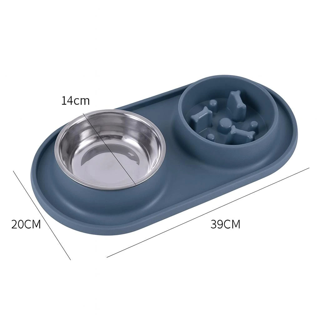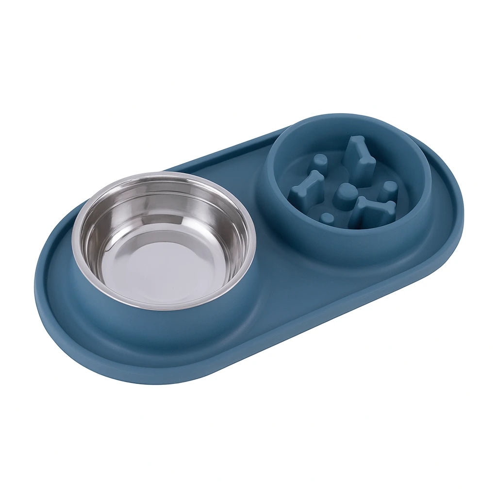 Por un lado, un plato de alimentación lenta para evitar atragantamientos; por el otro, un tazón de aluminio para el agua. Todo en una estación completa con base antideslizante y colores increíbles. ¡Ya no necesitas nada más!